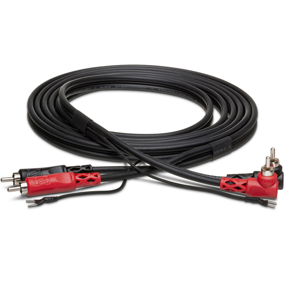 Hosa CRA203DJ Stereo Interconnect, Dual RCA To Dual Right-Angle RCA With Ground Wire, 3 M cable is specifically designed to link a turntable to an amplifier, DJ mixer, Dj Controller or phono preamp. It is highly suitable for all turntables that require a ground wire, providing reliable and efficient performance.
