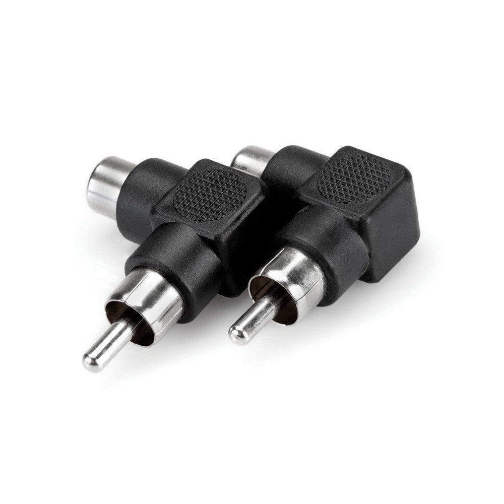 These Hosa GRA259 Right-Angle Adapters, RCA To Same, 2 Pc adapters are designed to change the orientation of phono plugs. They are right-angled for easy access to jacks with minimal clearance.