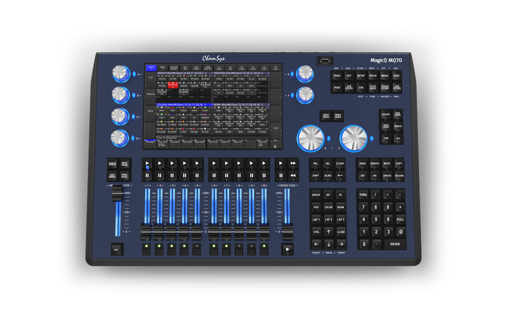 The MagicQ MQ70 runs the same MagicQ software as other MagicQ consoles, meaning that shows programmed on it can be loaded and ran on any other MagicQ console (within the universe limits).