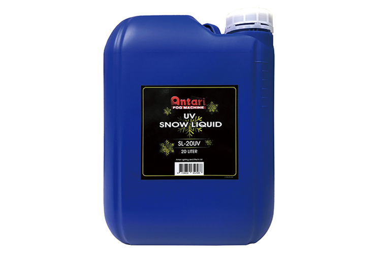 SL-UV: UV Snow Fluid The artificial snow-flakes produced by UV snow fluids react to UV lights and glow in the dark with UV light sources.